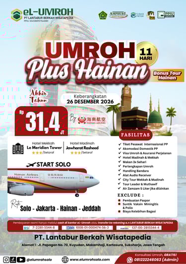 Wujudkan ibadah yang lebih bermakna dengan pengalaman perjalanan yang tak terlupakan. Setelah menyempurnakan umroh di Tanah Suci, Anda akan diajak menikmati destinasi pilihan yang penuh pesona: ketenangan tropis Hainan, kenyamanan modern Malaysia, keindahan sejarah Turki, atau kemegahan peradaban kuno Mesir.