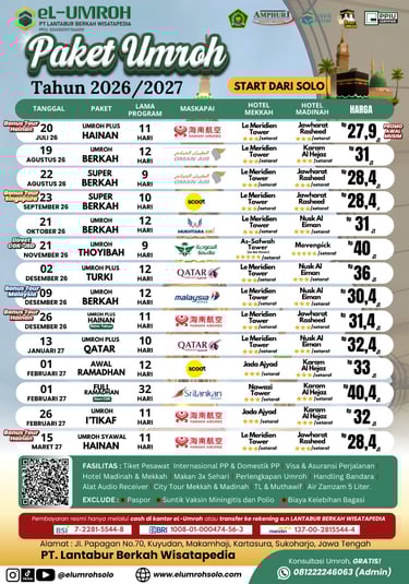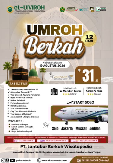 Paket Umroh Berkah adalah pilihan perjalanan ibadah yang dirancang untuk memberikan kenyamanan, kekhusyukan, dan pengalaman spiritual maksimal kepada jamaah dengan harga yang kompetitif.